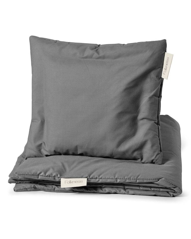 Practical and beautiful bedding, here in a baby set. The baby set includes a Folkness duvet and pillow. It doesn’t get easier than with the Folkness baby set – all in one, no duvet covers or pillowcases needed.